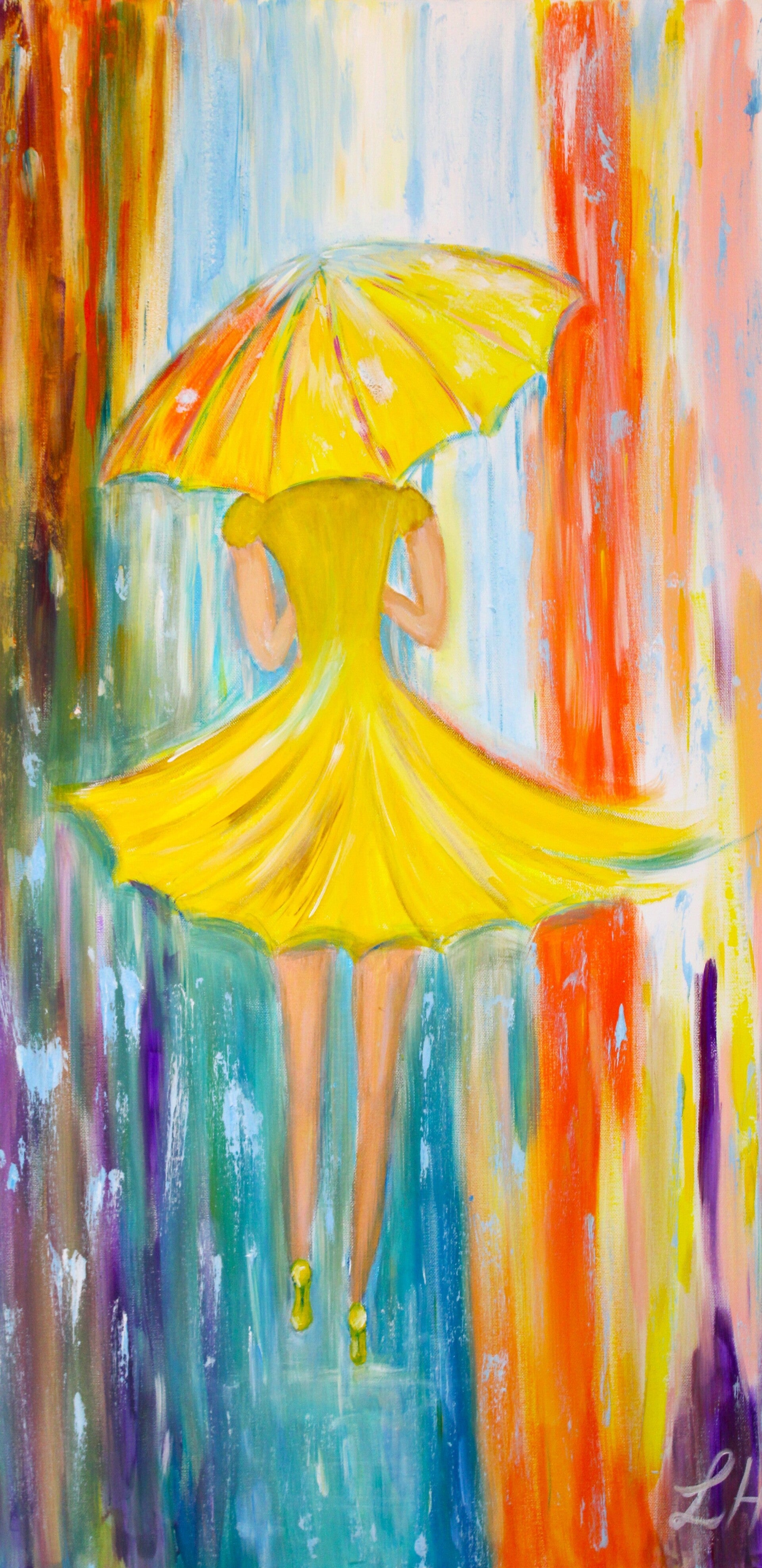 In diesem Werk habe ich mit Acryl und Sand eine lebendige Verbindung von Abstraktion und Realismus geschaffen. Die strahlende Gelbnuance des Kleides und Regenschirms symbolisiert Freude und Hoffnung, während der bewegte Hintergrund Dynamik und Emotion einfängt. Es ist eine Einladung, den Moment zu feiern und die Leichtigkeit des Seins inmitten wechselhafter Umstände zu spüren. Dieses Bild bringt Wärme und positive Energie in jeden Raum. Größe 100x50cm
