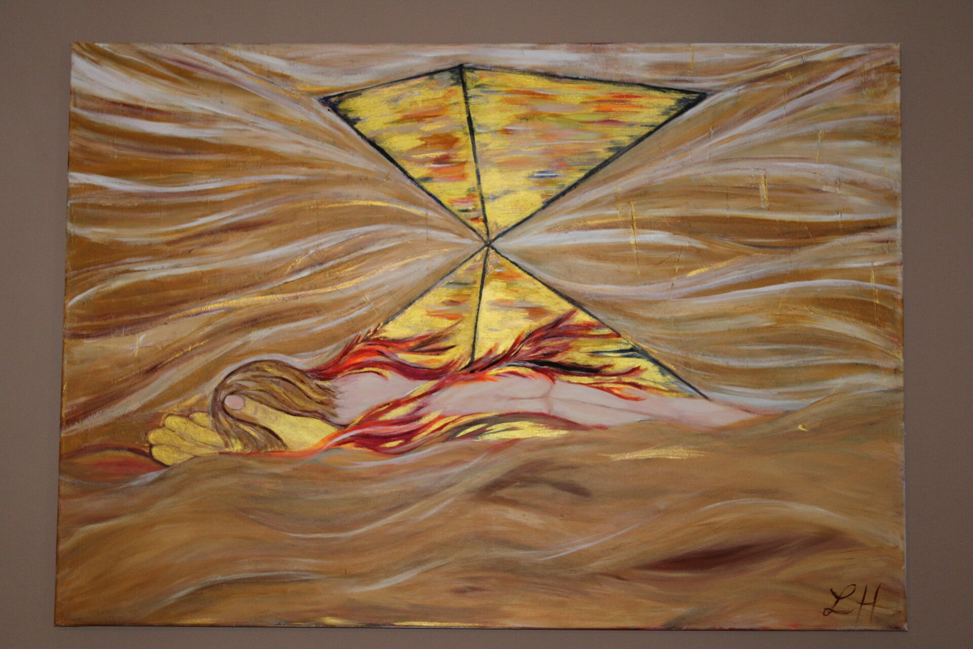 n diesem Gemälde nutze ich Acrylfarben, um eine surreale Landschaft zu erschaffen, die Energie und Bewegung verkörpert. Die Szene zeigt eine Figur, die sich mit der Natur verschmilzt, wobei Elemente wie Wind und Erde dramatisch zusammenfließen. Meine Inspiration stammt aus der Kraft und Unvorhersehbarkeit der natürlichen Welt, die ich als visuelles Echo menschlicher Emotionen darstelle. Dieses Kunstwerk soll den Betrachter dazu anregen, über die Verbindung zwischen Mensch, Energie und Natur nachzudenken und dabei eine tiefe, emotionale Resonanz zu erleben. Die Hingabe an die schöpfende Macht. Das spüren von der Energie in uns. Der Hintergrund bewegt sich bei der Betrachtung aus der Ferne.